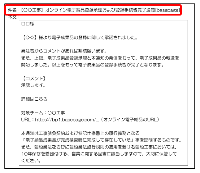 件名(メールの場合):オンライン電子納品に伴う、basepage登録データの照会