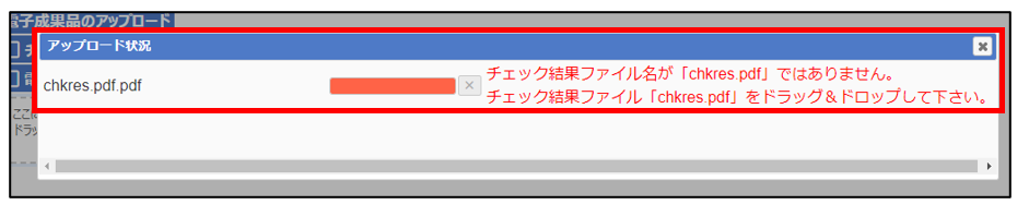 『チェック結果ファイル名が「chkres.pdf」ではありません。チェック結果ファイル「chkres.pdf」をドラッグ&ドロップして下さい。』と表示されます。