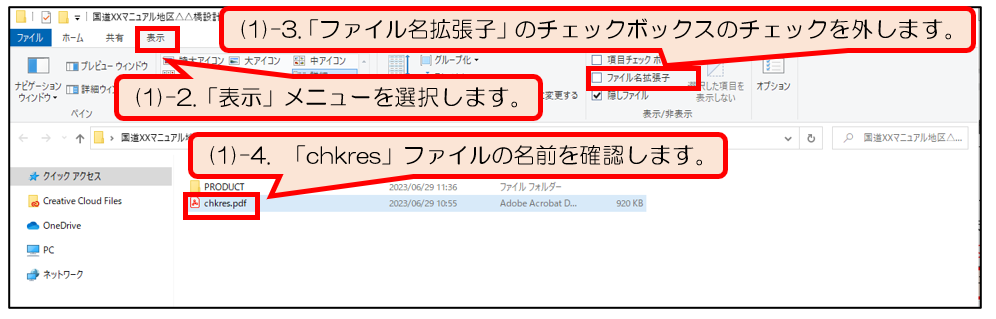 (1)-3.「ファイル名拡張子」のチェックボックスのチェックを外します。
