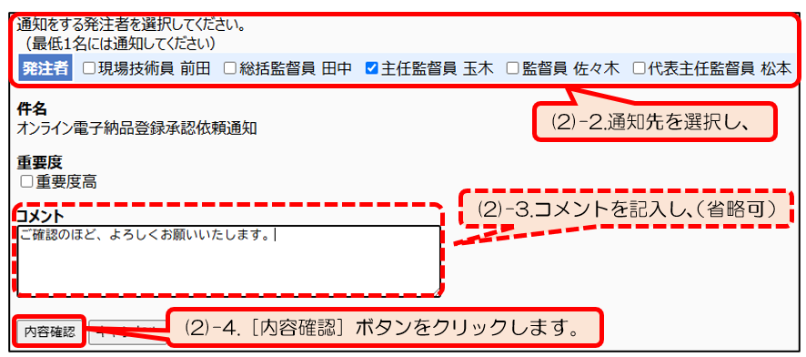 (2)-4.入力が終了したら、[内容確認]ボタンをクリックします。