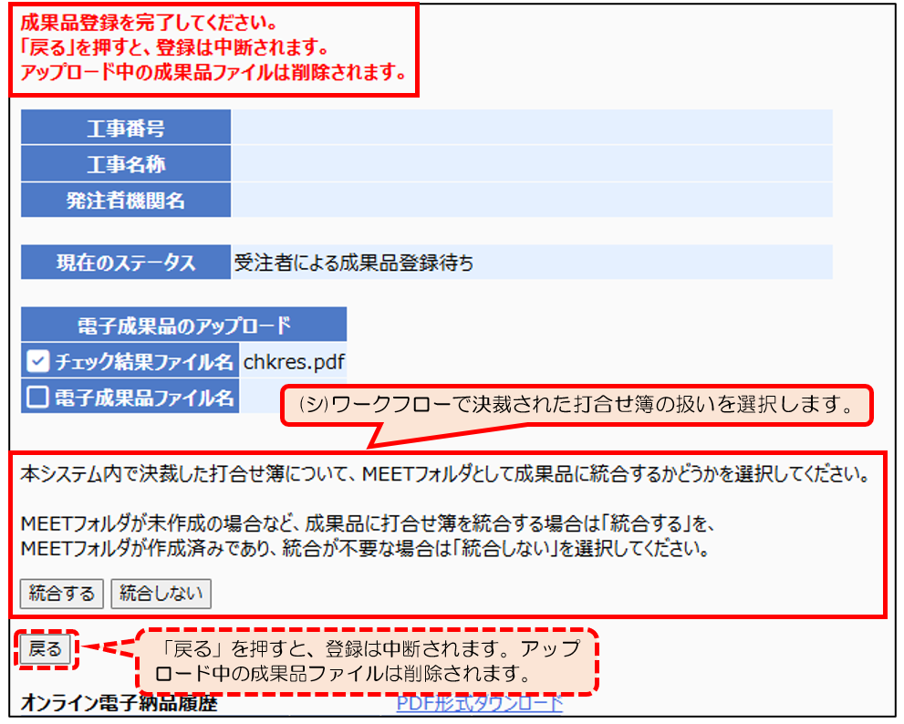 成果品にエラーが含まれていたため、発注者への登録申請処理は中断されました。
