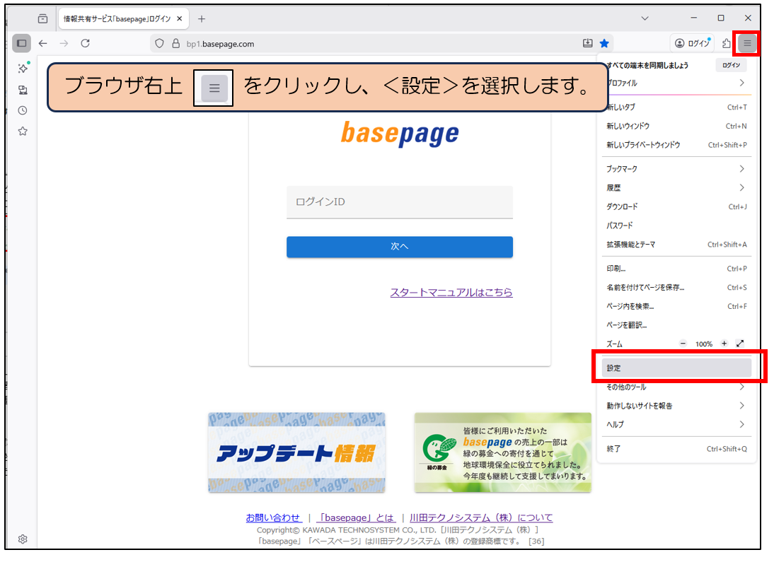 URL:https://bp1.basepage.com/…(オンライン電子納品のURL)