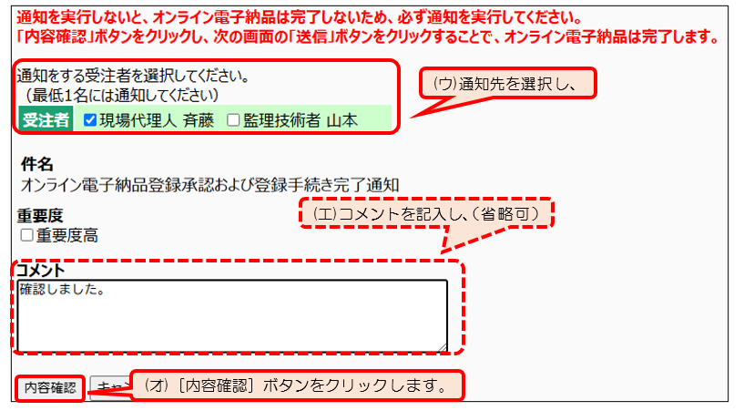 (エ)入力が終了したら、[内容確認]ボタンをクリックします。