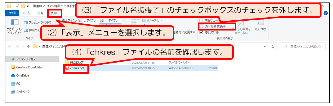 (3)「ファイル名拡張子」のチェックボックスのチェックを外します。