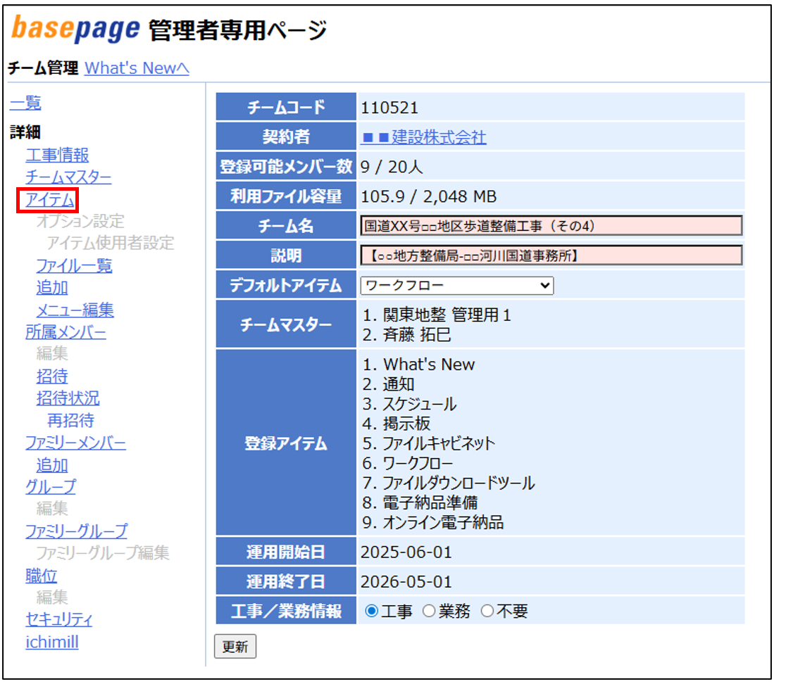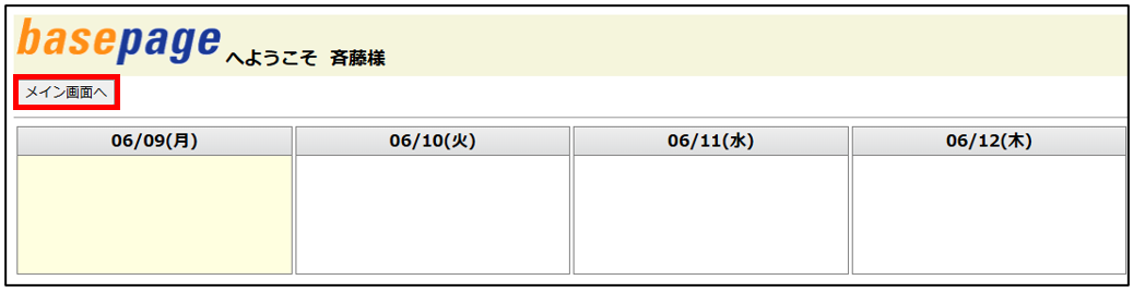 basepageにログインし、[メイン画面へ]ボタンをクリックします。
