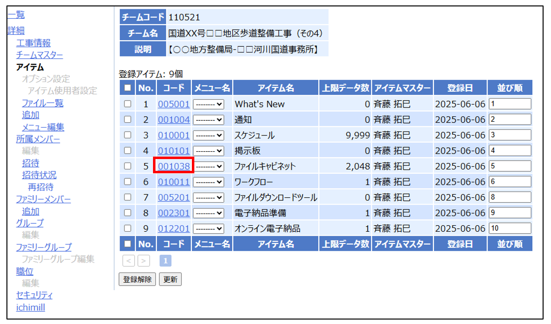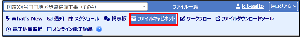 画面左上のメニューから<ファイルキャビネット>をクリックします。