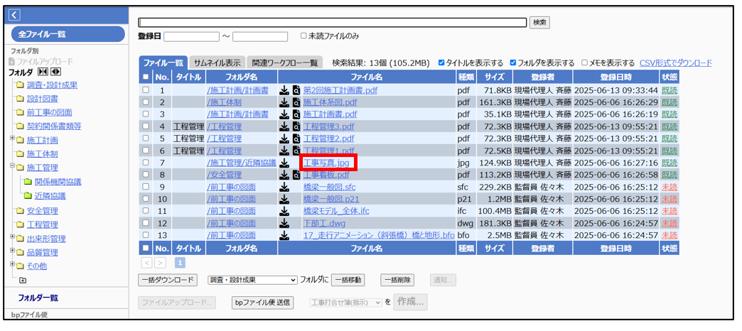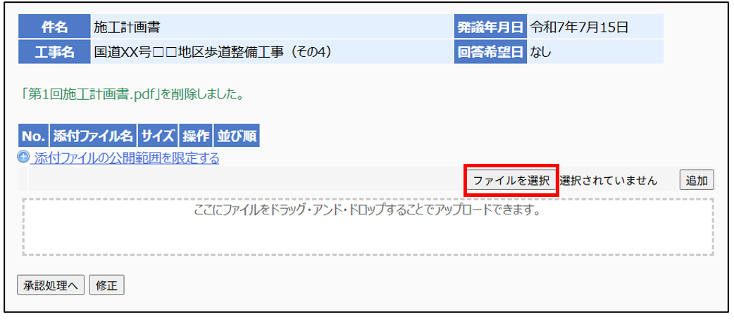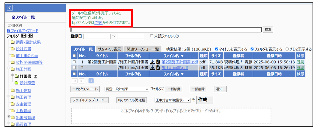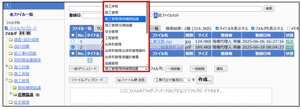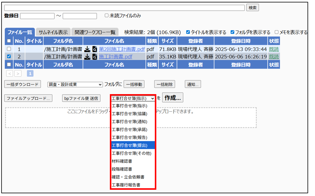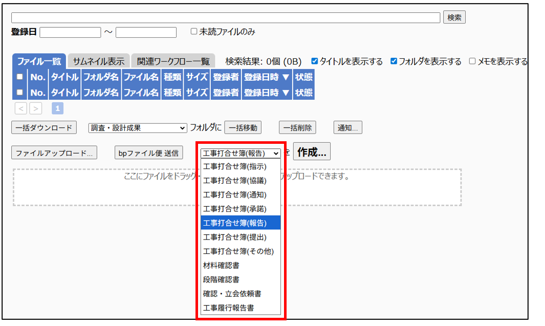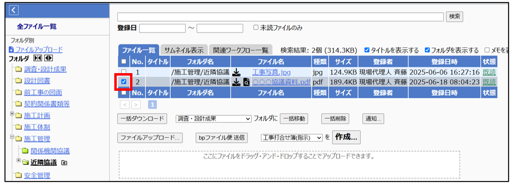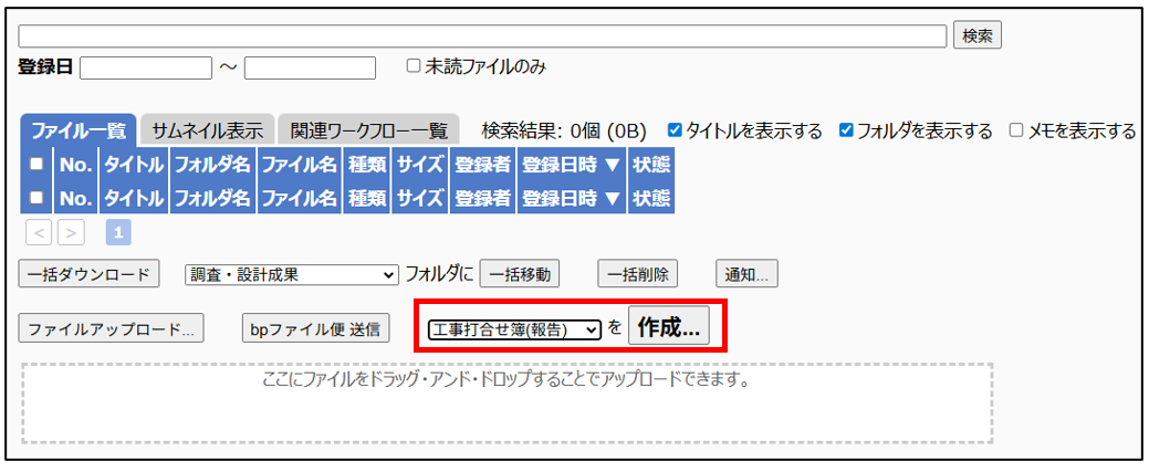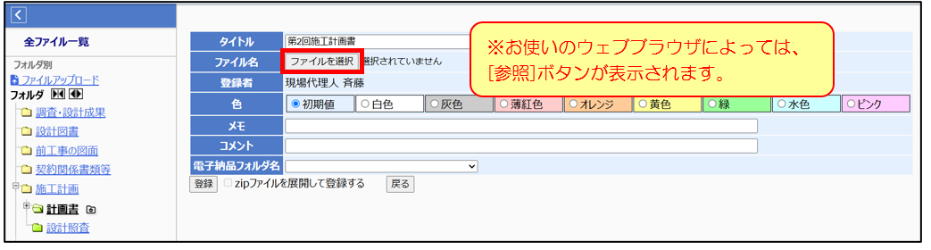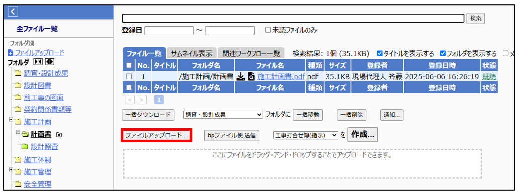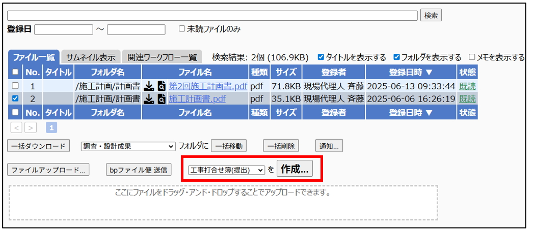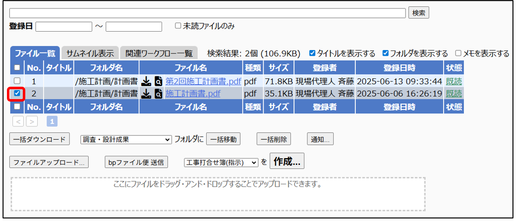 [ファイルアップロード]ボタンからの複数ファイルの一括アップロード