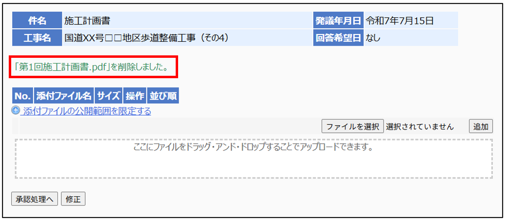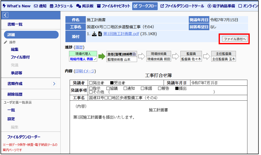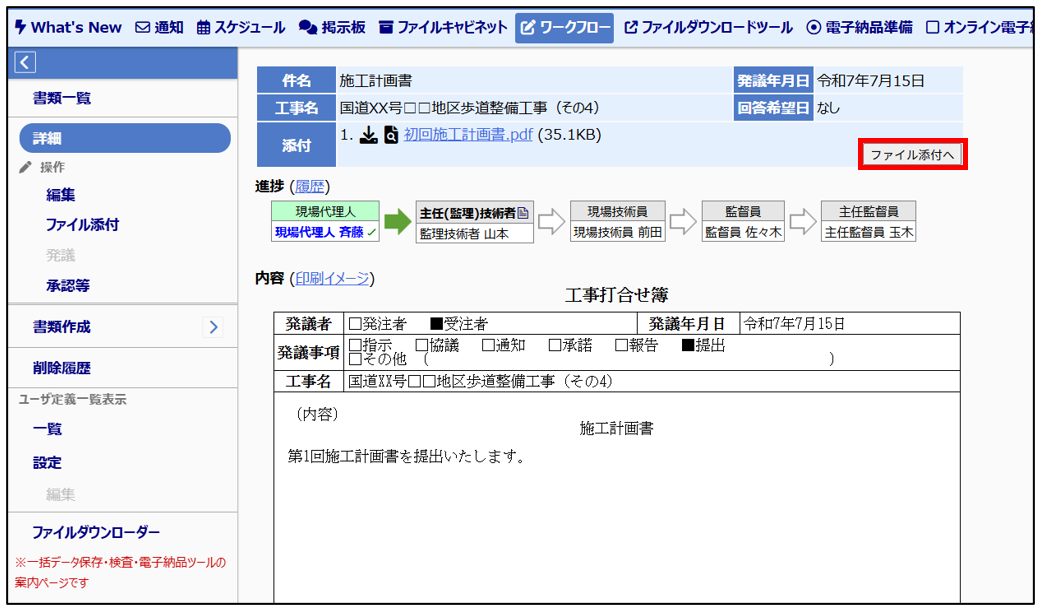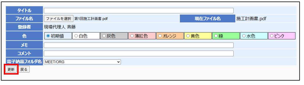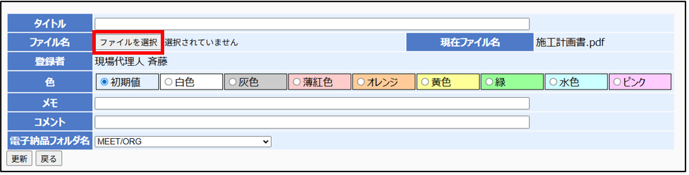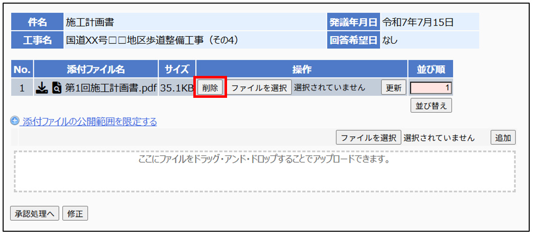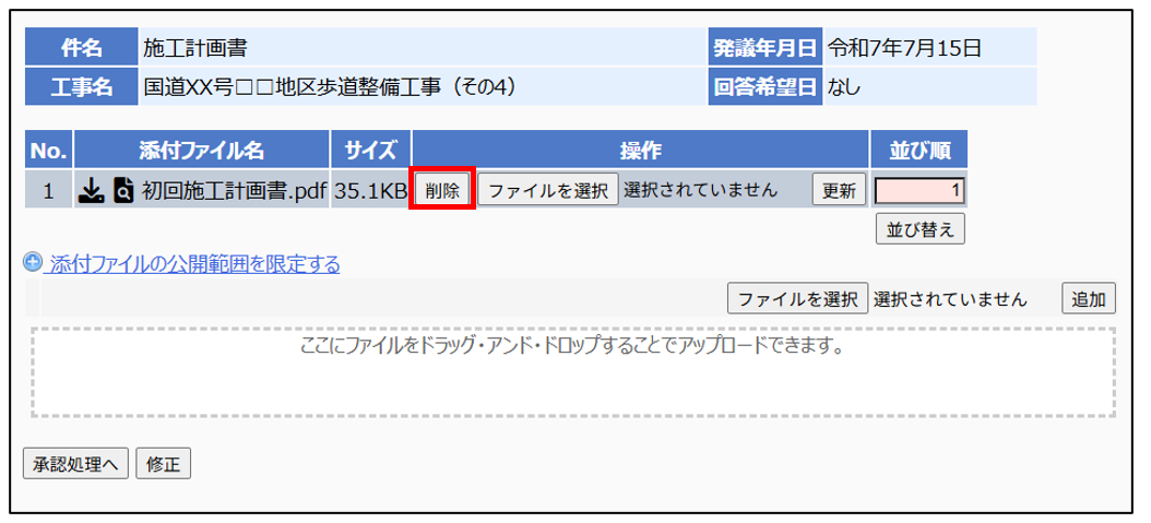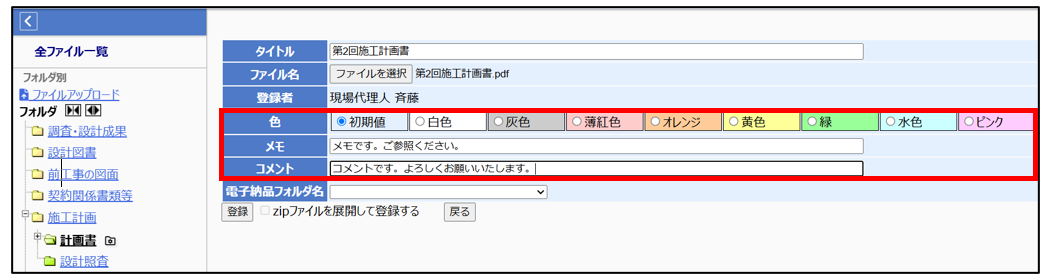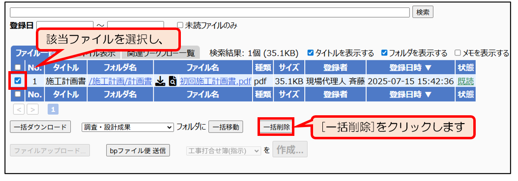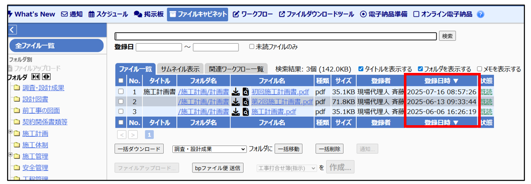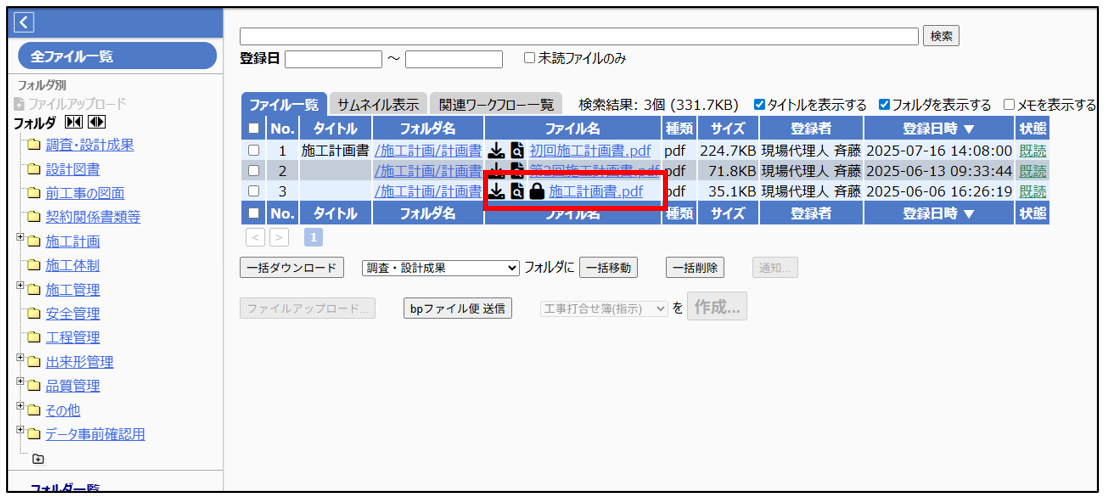 また、最新のファイルを[削除]した場合に該当ファイルに変更前のデータが存在した際は、履歴の管理により、変更前のデータが最新のファイルとしてファイルキャビネット上に表示されます。履歴を含めて削除される場合は履歴分の回数[削除]を実行してください。