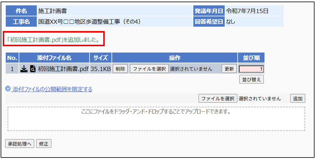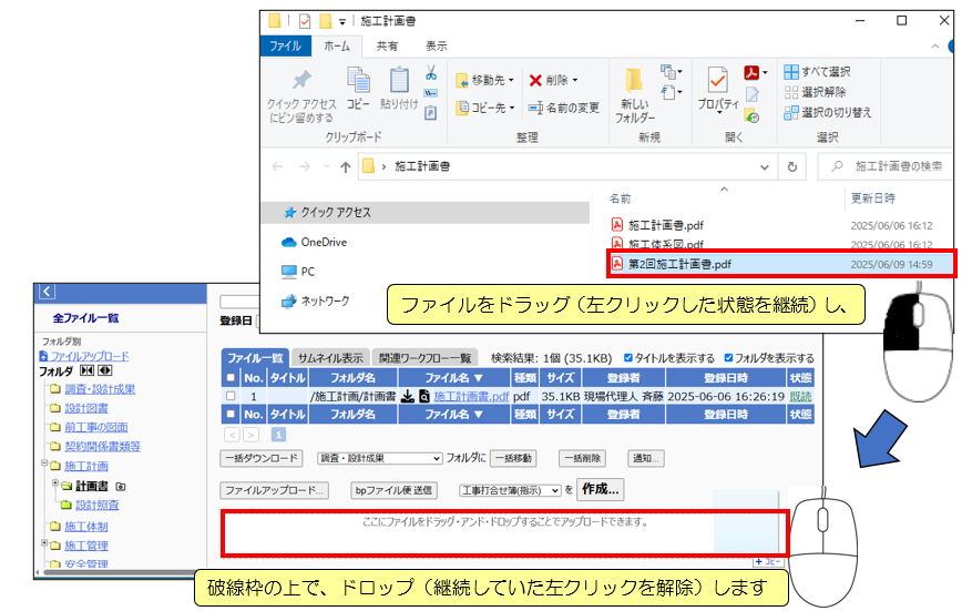 (2)ドラッグ・アンド・ドロップでアップロードする場合