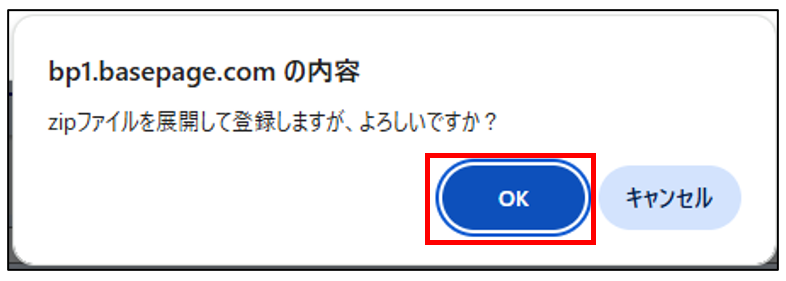 「zipファイルを展開して登録しますが、よろしいですか?」と表示されますので、[OK]をクリックし、実行します。