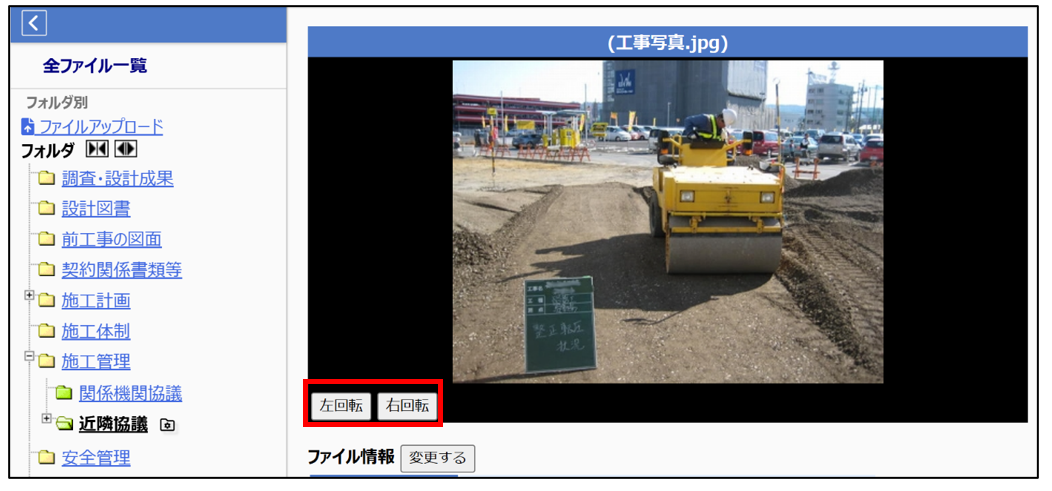 ビューア画面左下のボタンによって画像を左右に回転させることができます。