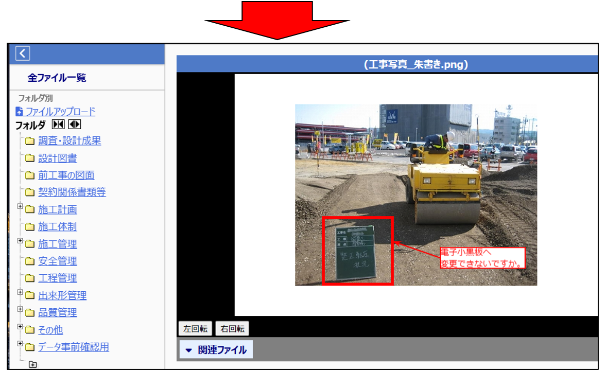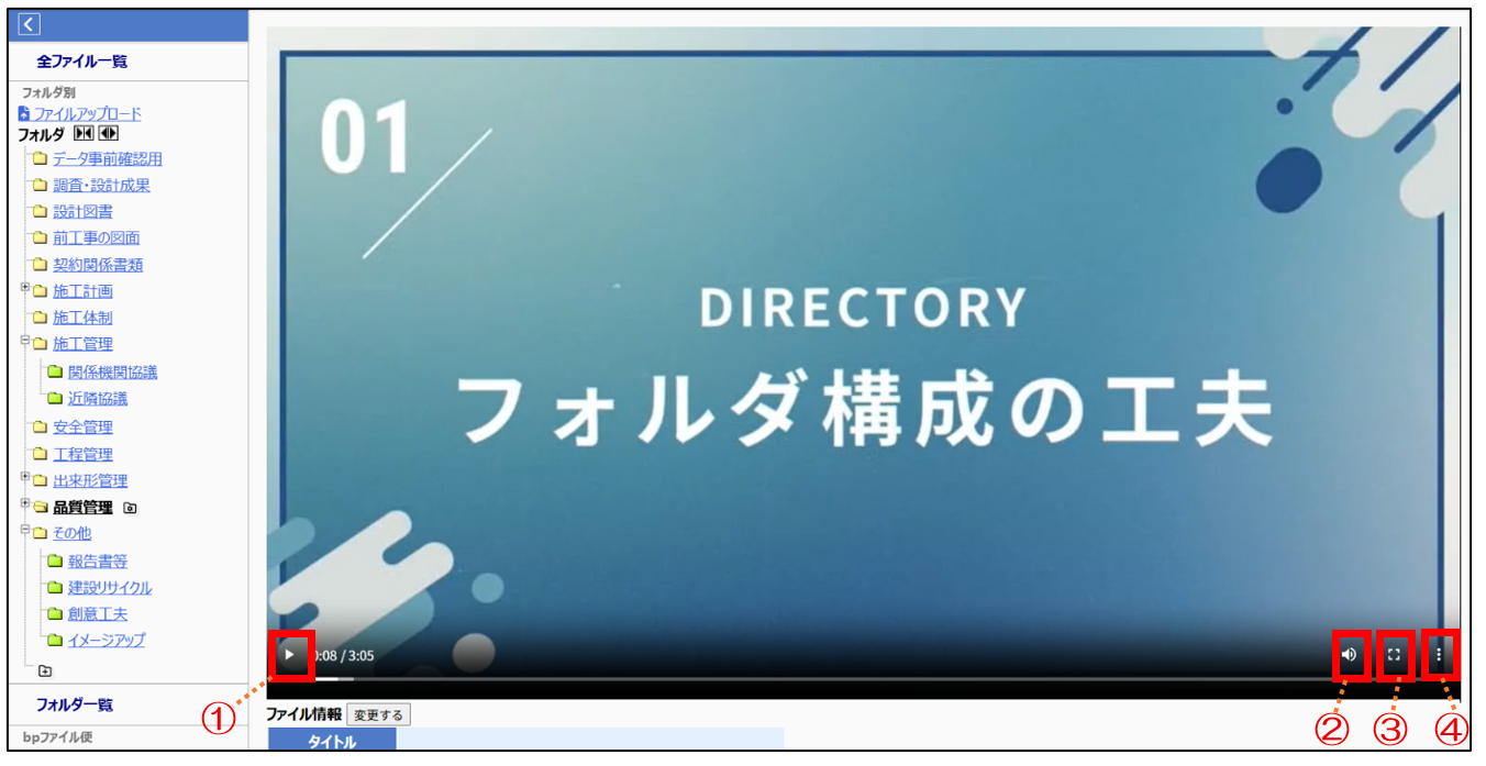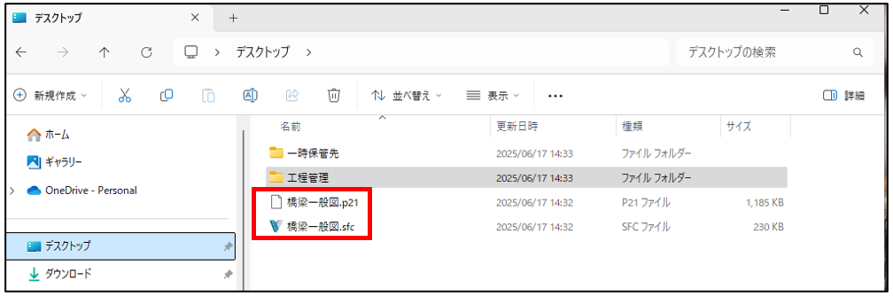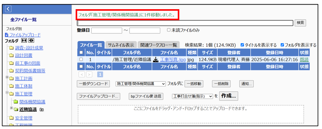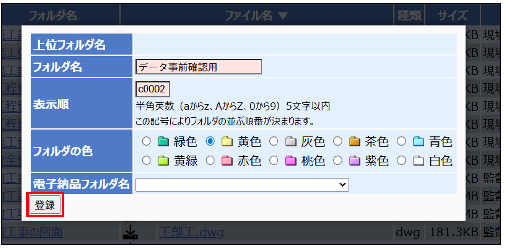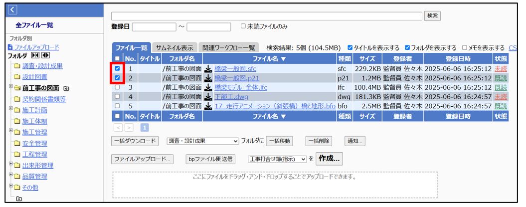 例として<データ事前確認用>フォルダを<調査・設計成果>フォルダの上に移動する手順をご説明します。