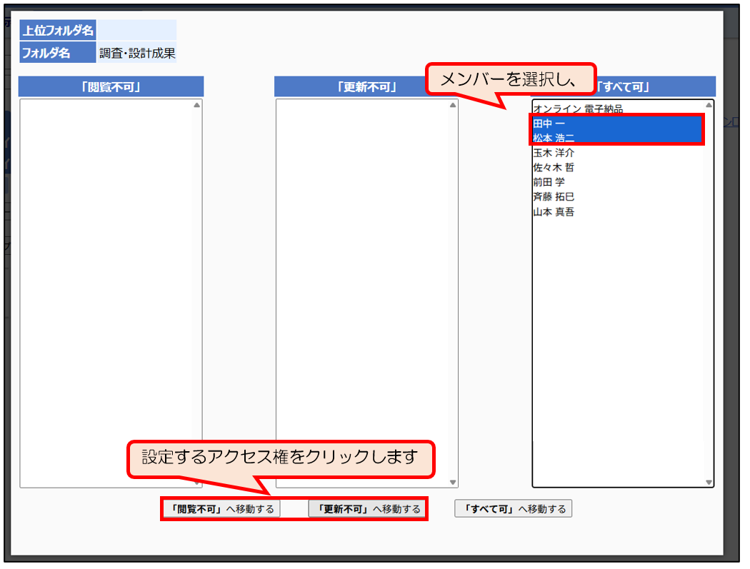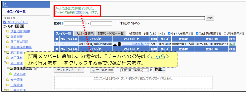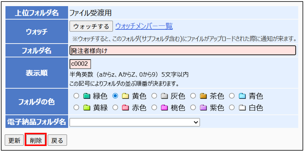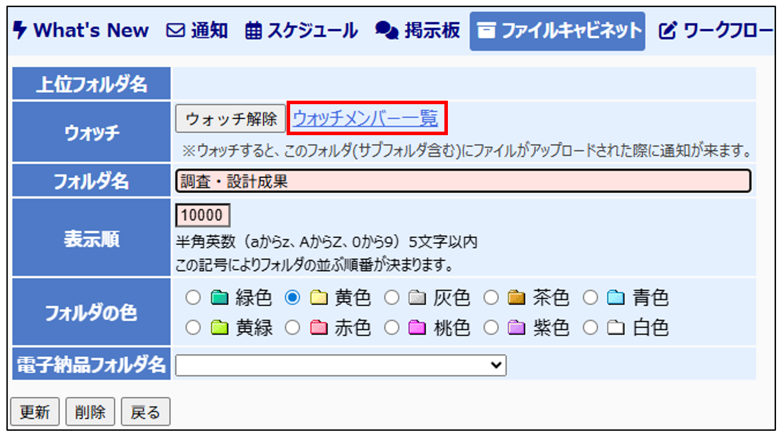 該当フォルダに設定されている他のウォッチメンバーを確認したい場合は、<ウォッチメンバー一覧>リンクをクリックします。