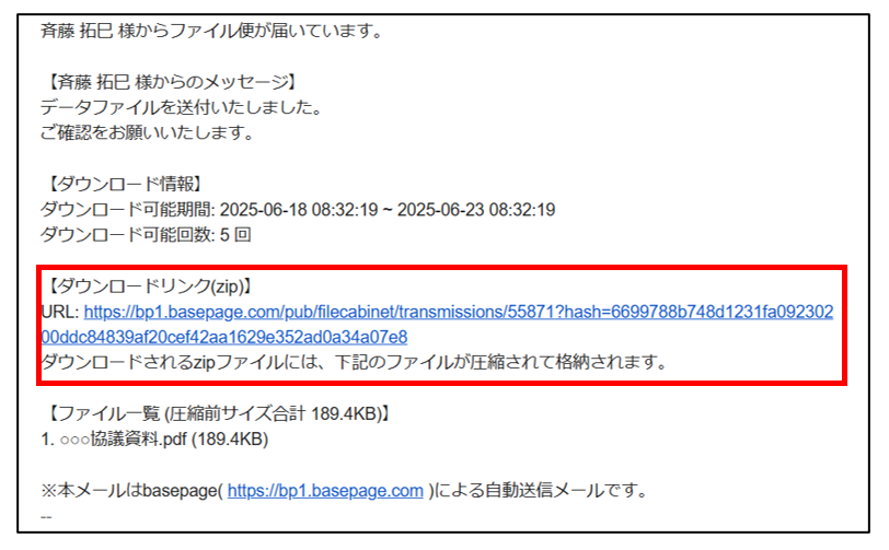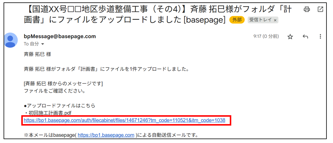 ファイルキャビネットにファイルを登録した際に送付される通知メールよりファイルを閲覧する場合は以下の手順をご参照ください。