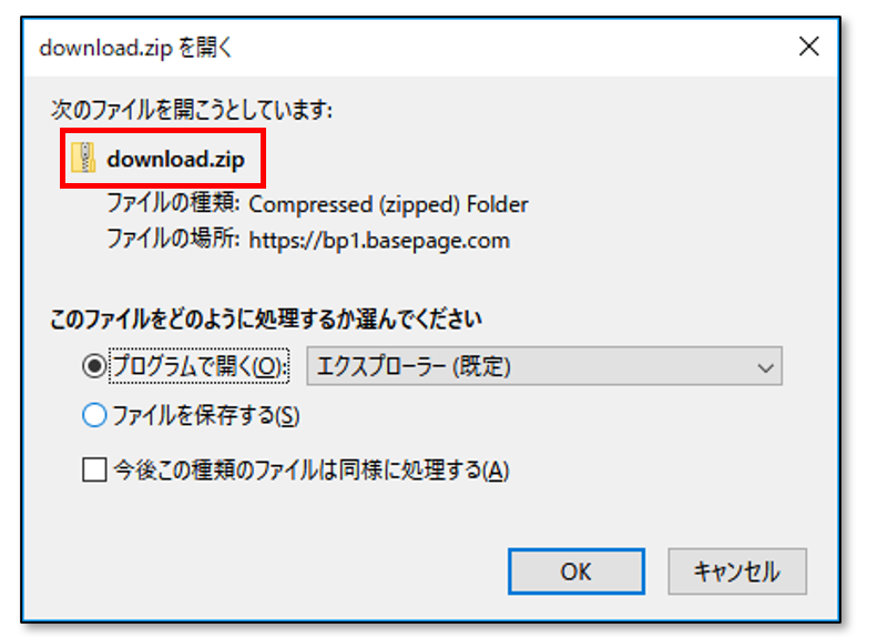 ※ダウンロードとは:別の端末(本マニュアルではbasepageのサーバー)からお使いの端末へデータを転送すること