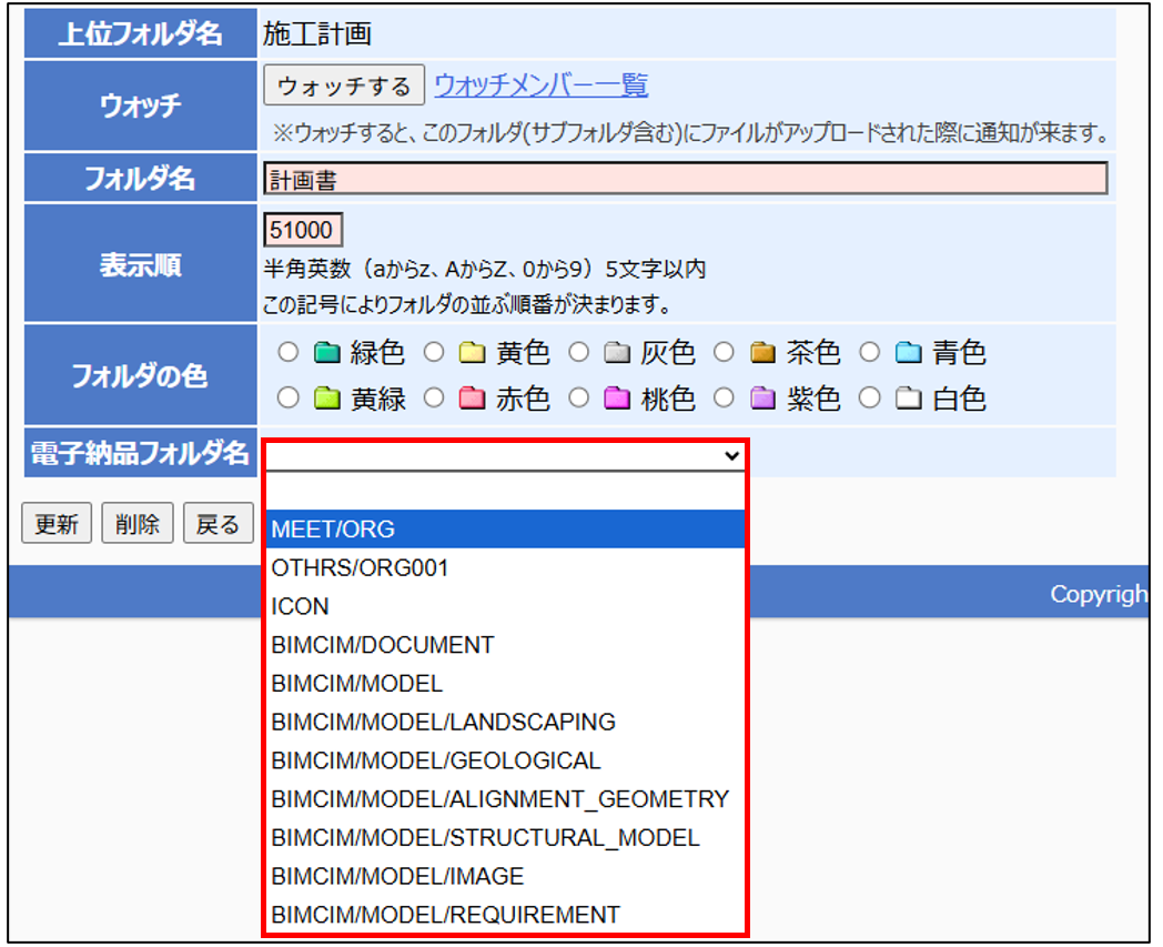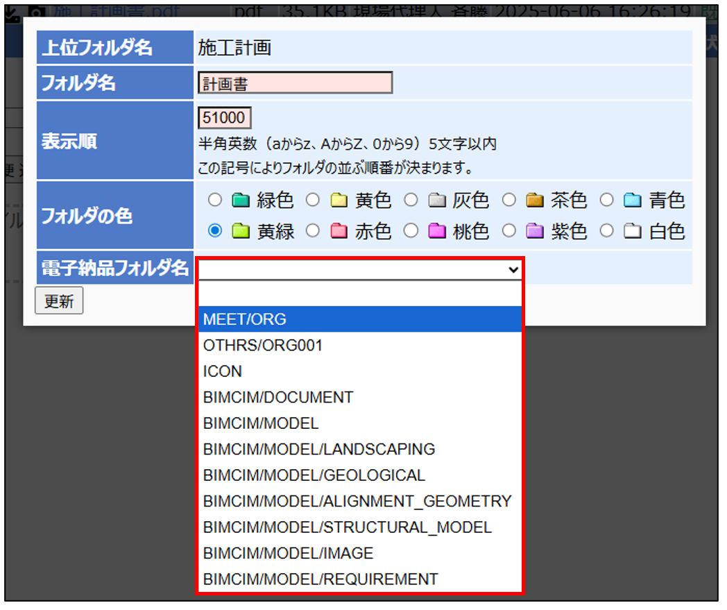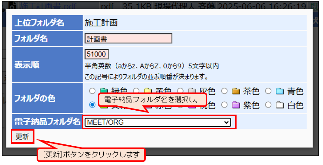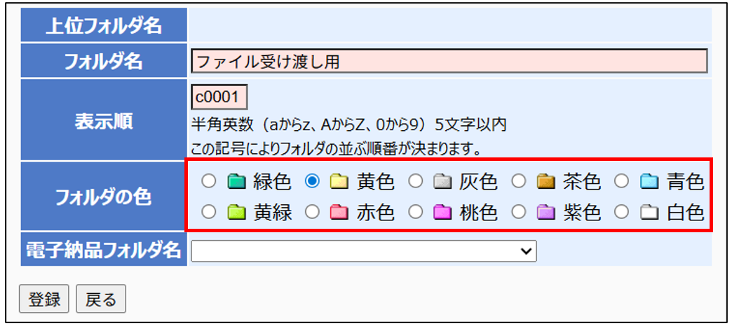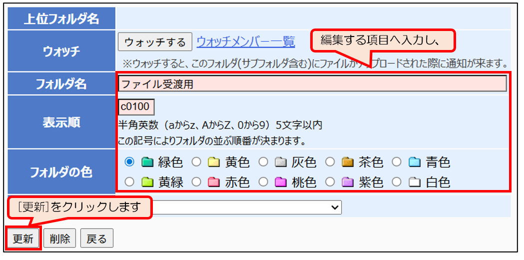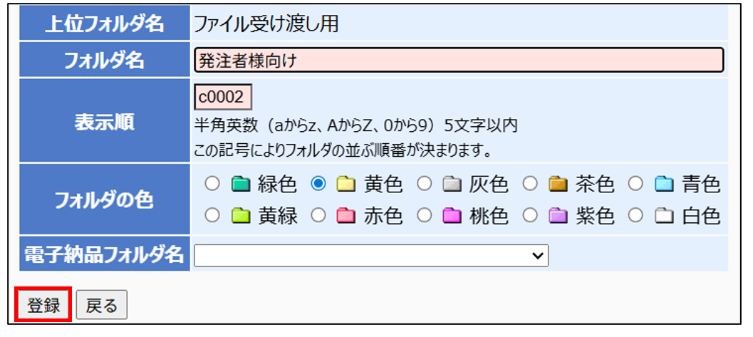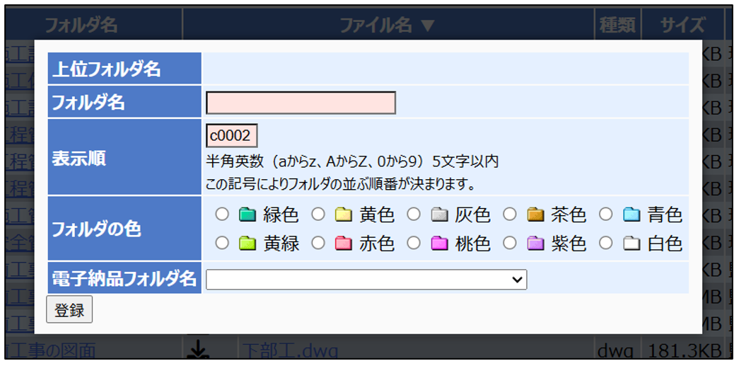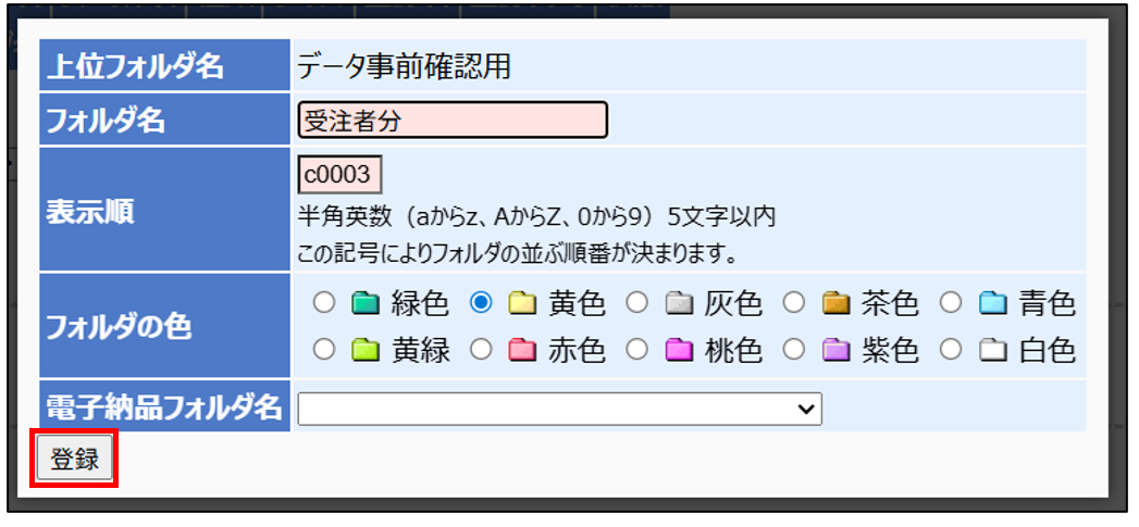 フォルダの詳細画面が開きますので、「表示順」の数字を移動させたい場所の前後のフォルダ表示順の間へ設定します。