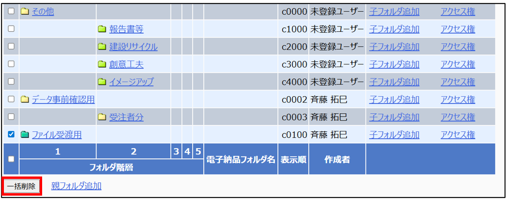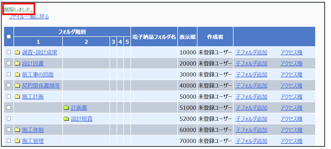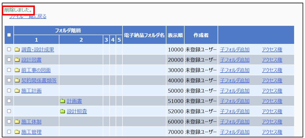 をクリックすると全ての子フォルダが格納され、非表示になります。