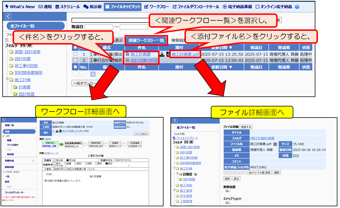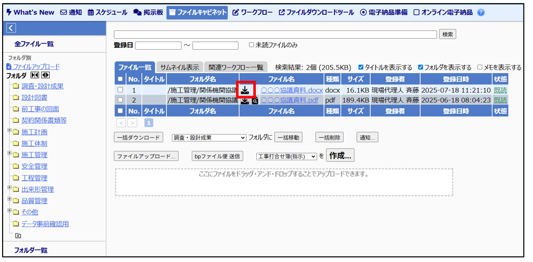 ファイルキャビネットとは、basepage上にファイルを保存することにより、ファイルを共有して、閲覧や管理、ワークフロー発議を行うことができる機能です。