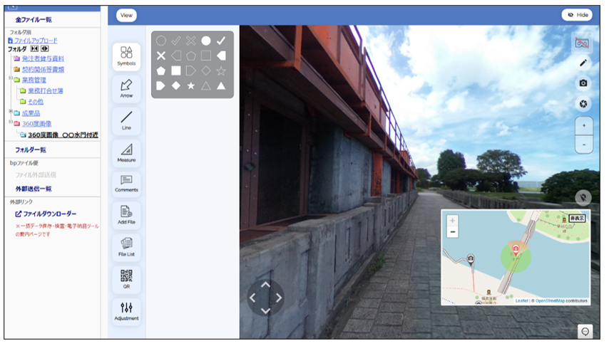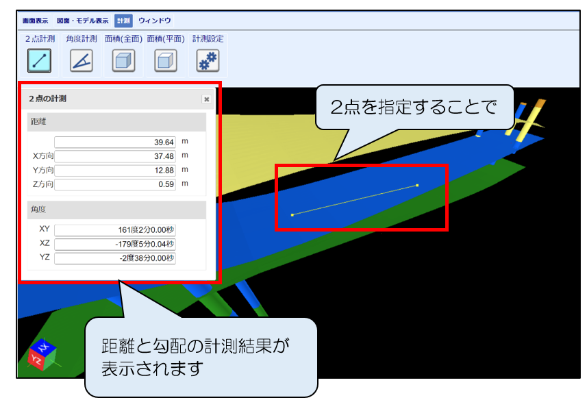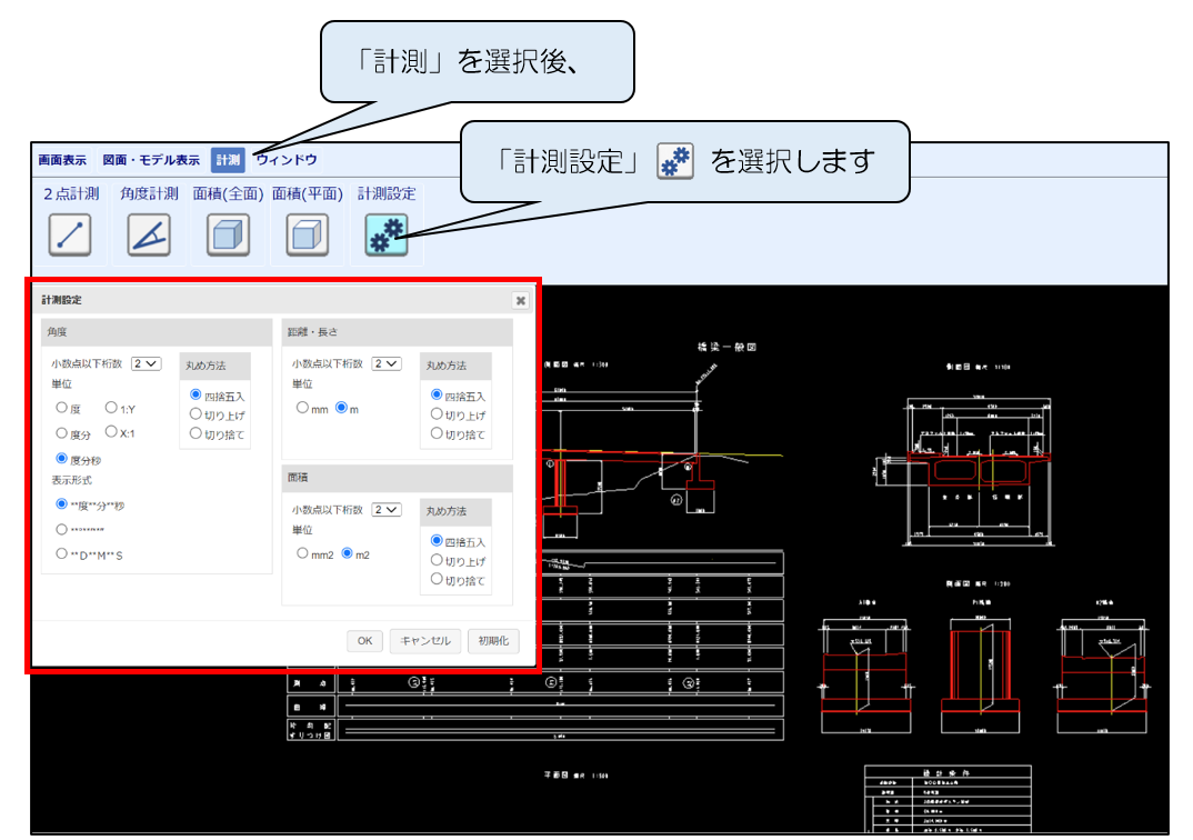 ファイルのプレビュー画面が表示され、計測、表示切り替え等可能です。