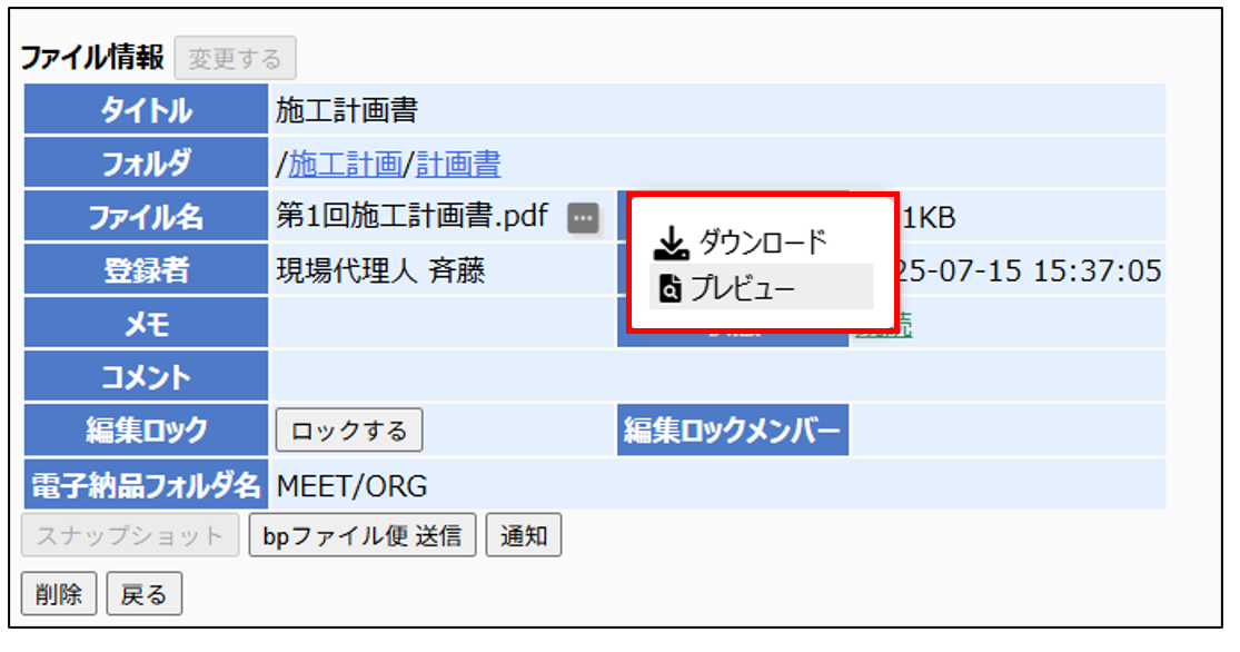 ファイル詳細画面が表示され、ファイル情報の上部にビューア画面が展開します。