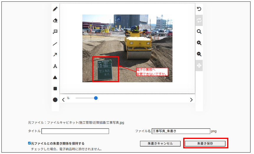 上部のファイル情報が変更前のファイル名に変わりましたら、をクリックします。