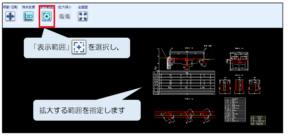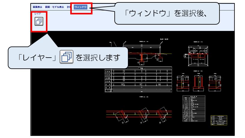 ※専用メニューの操作は「5-6.CADビューア機能」をご参照ください。