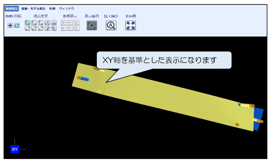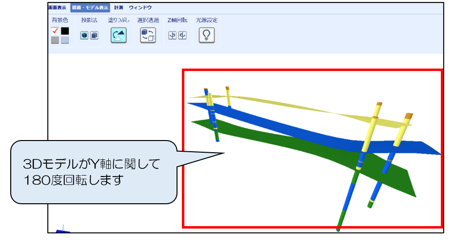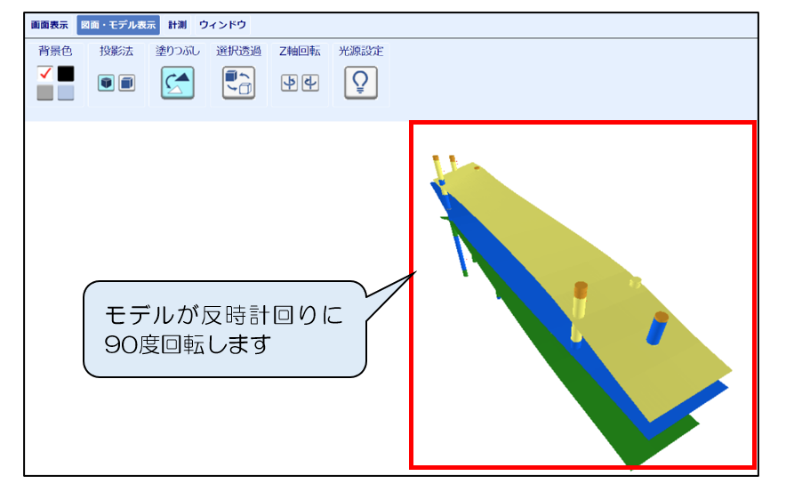 「Z軸回転」コマンドで3DモデルをZ軸中心で90度回転させることができます。