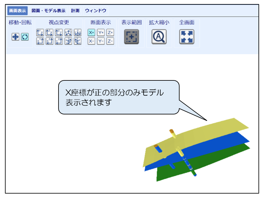 取得したい断面図を左クリックで選択していきます。3点以上選択することもできます。