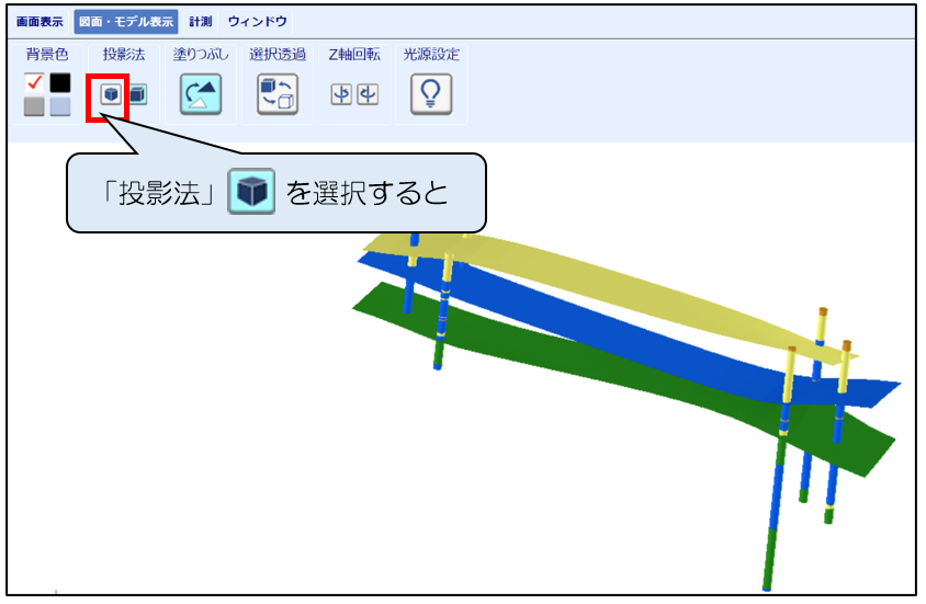 「投影法」コマンドでモデルをY軸に関して対称表示させることができます。