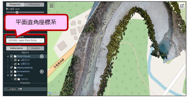 さらに、平面直角座標系を選択すると、背景に地図を表示させることができます。
