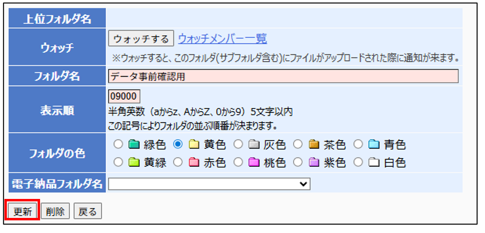 フォルダの詳細画面が表示されますので[ウォッチする]をクリックします。